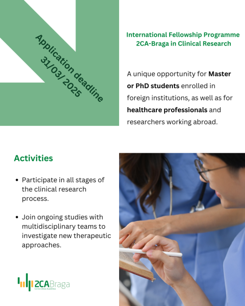 25 Fevereiro 2025 Educação e Formação International Fellowship Programme 2CA-Braga in Clinical Research